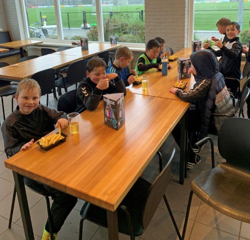Na deze inspanning, en de respectvolle felicitaties, werden onze topsporters getrakteerd op een welverdiend patatje met een gezonde dosis mayonaise.