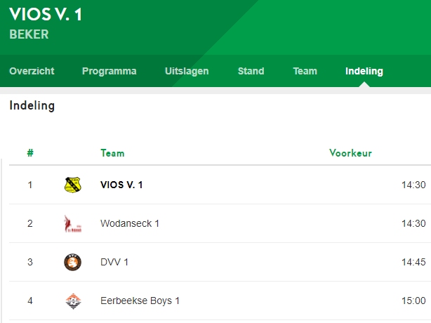 Bekerindeling Vios 1