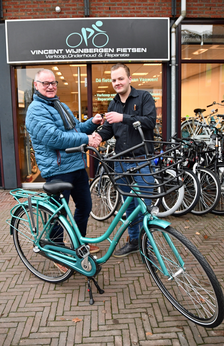 De heer Wijnbergen wenste de gelukkige winnaar veel plezier met de fiets en overhandigde hem de sleutels.