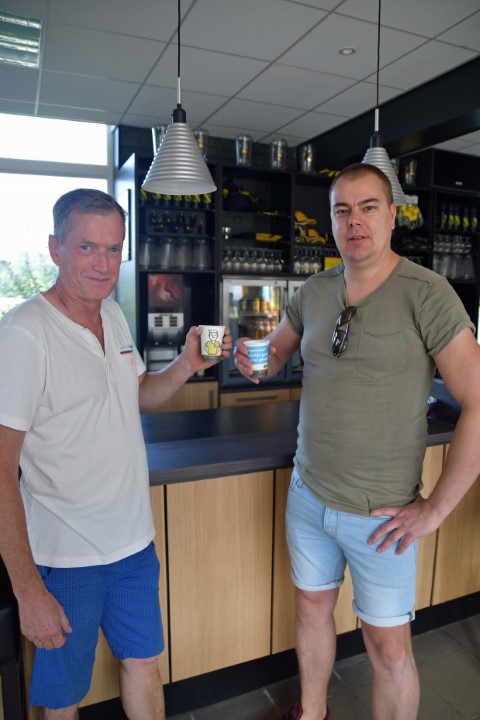 Afgelopen zaterdag werd het eerste bekertje koffie in de Vios clubkleuren overhandigd aan Klaas Zondergeld door Ludo van Mossel, directeur van Erick Personeelsdiensten B.V. uit Deventer en Enschede en onlangs met een nieuwe vestiging op het Eekterveld in Vaassen.