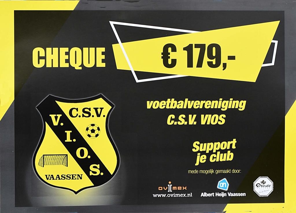 Op zaterdag 30 januari mocht Tessa van Huffelen namens VIOS de cheque met het eindbedrag in ontvangst nemen. Op de cheque stond het mooie bedrag van € 179,-.