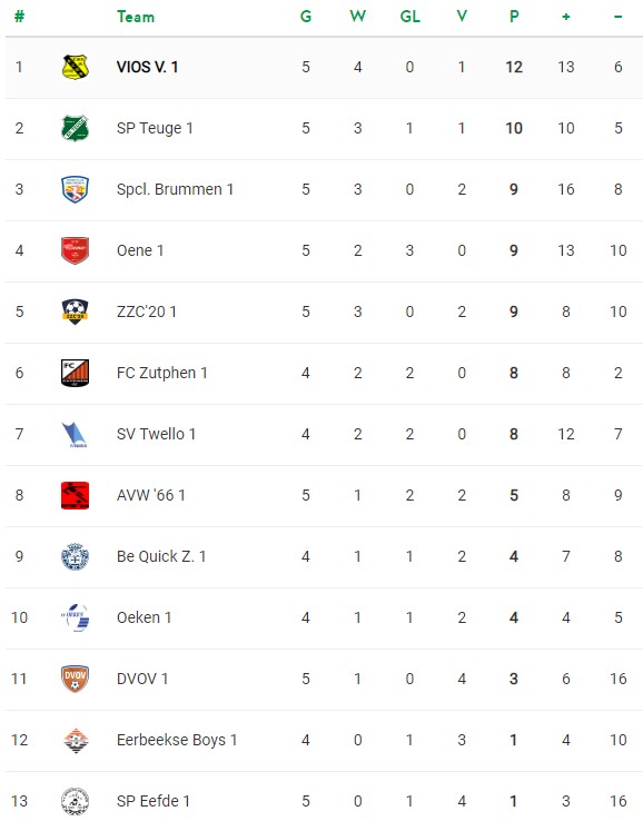 Een verdiende overwinning van Vios die hiermee aan de leiding gaat in de competitie. Volgende week gaat Vios op bezoek bij de nummer twee SP Teuge.