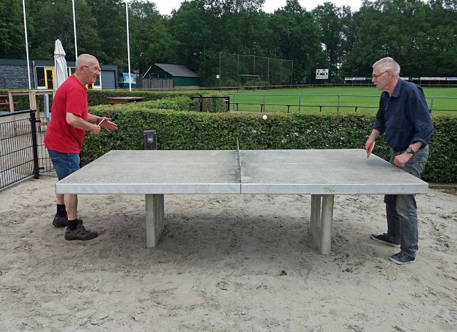 En hebben de tennistafel meteen ingewijd met een potje tafeltennis.