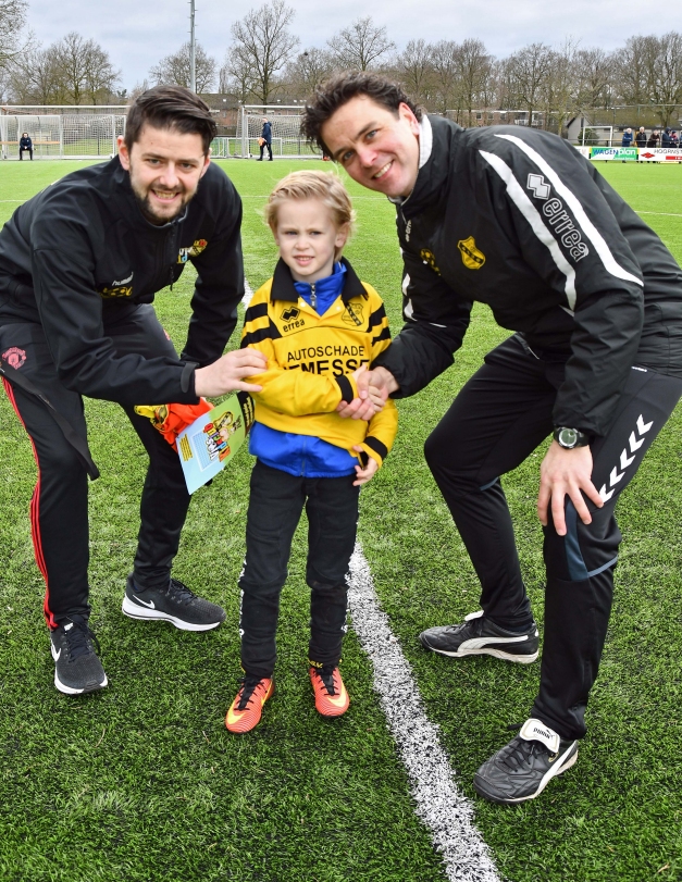 Siem heeft zijn stickerkaart van de Vios Kidsclub helemaal vol en kreeg daarom van trainer Tom Beekman een mooie keycord.