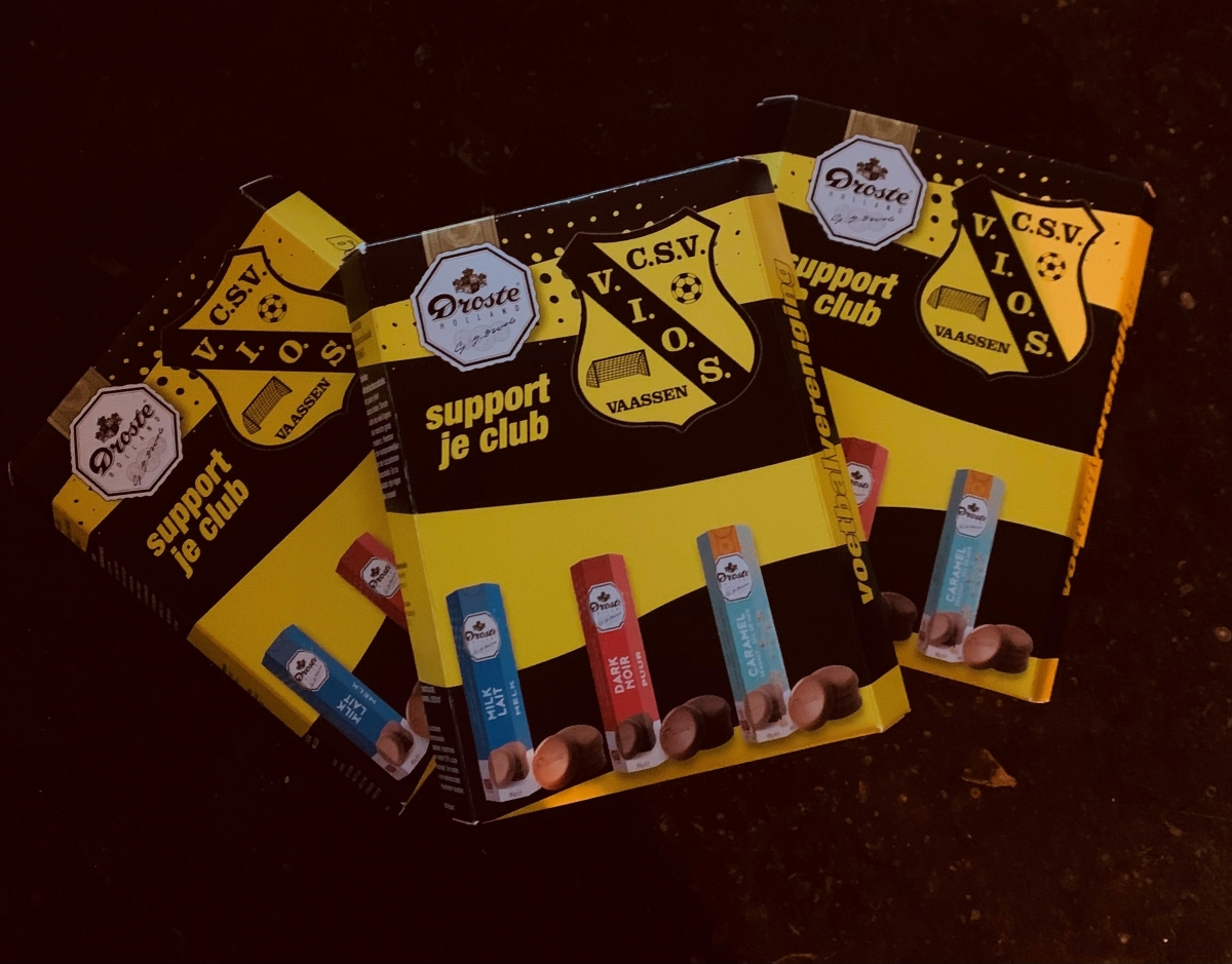 Het leuke is dat de Vios doosjes voor €4.50 te koop zijn en dat er per aankoop €1,- naar de club gaat.