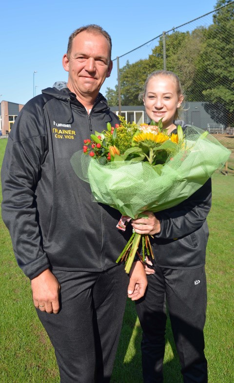 De familie Snijder werd dan ook hartelijk bedankt door de meiden met een mooie bos bloemen. Hierna konden de meiden beginnen aan de eerste bekerwedstrijd.