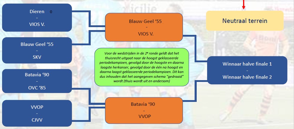 De halve finale wordt gespeeld op zaterdag 8 Juni om 15:00 op sportpark Peppelensteeg in Ede