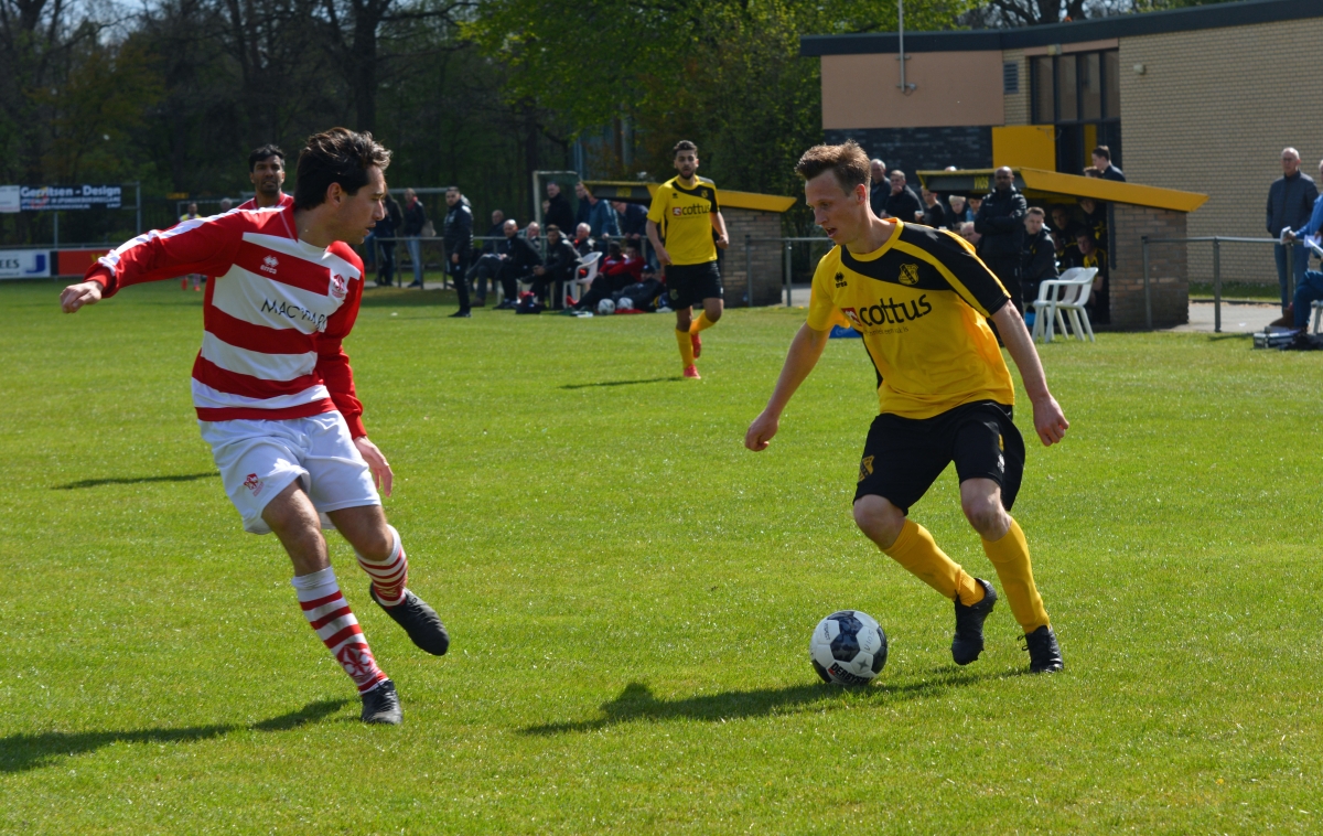 In de wedstrijd bleek hier aanvankelijk niets van. VIOS begon veel te slap en gaf het technisch vaardige Lelystad alle ruimte om aan te vallen. De 0-1 liet dan ook niet lang op zich wachten. In de 4e minuut kon een hoge voorzet door Joshua Tijdens ongehinderd worden binnengeknikt. VIOS oogde aangeslagen, maar wist 10 minuten later op gelijke hoogte te komen. Een afgemeten vrije trap van Jacco Verstraten, werd door de instormende Dennis de Jong ingekopt. Na de gelijkmaker kwam het weinig hoogstaande duel meer in evenwicht. Behoudens een vrije trap van Lelystad die rakelings overzeilde, wisten de ploegen geen kansen te creëren.