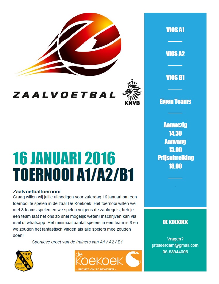 Zaterdag 28 januari zijn de tijden als volgt. 10.00 – 10.45 mini en kleuters 10.45 – 12.00 F elftallen 12.00 – 13.15 E elftallen Heb je vragen dan kun je contact opnemen met: Arnaud Velthoen 06-12913227 pupillenviosvaassen@gmail.com