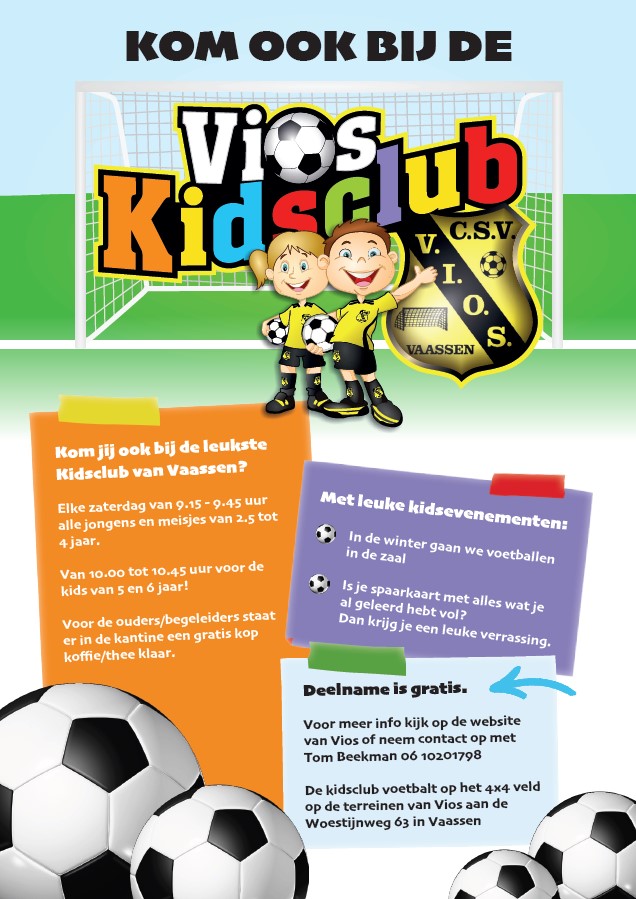 Zaterdagmorgen 16 september start de Vios kidsclub weer met het traditionele Vios Kidsclub event, hierbij zijn alle jongens en meisjes uit Vaassen en omstreken van harte welkom!